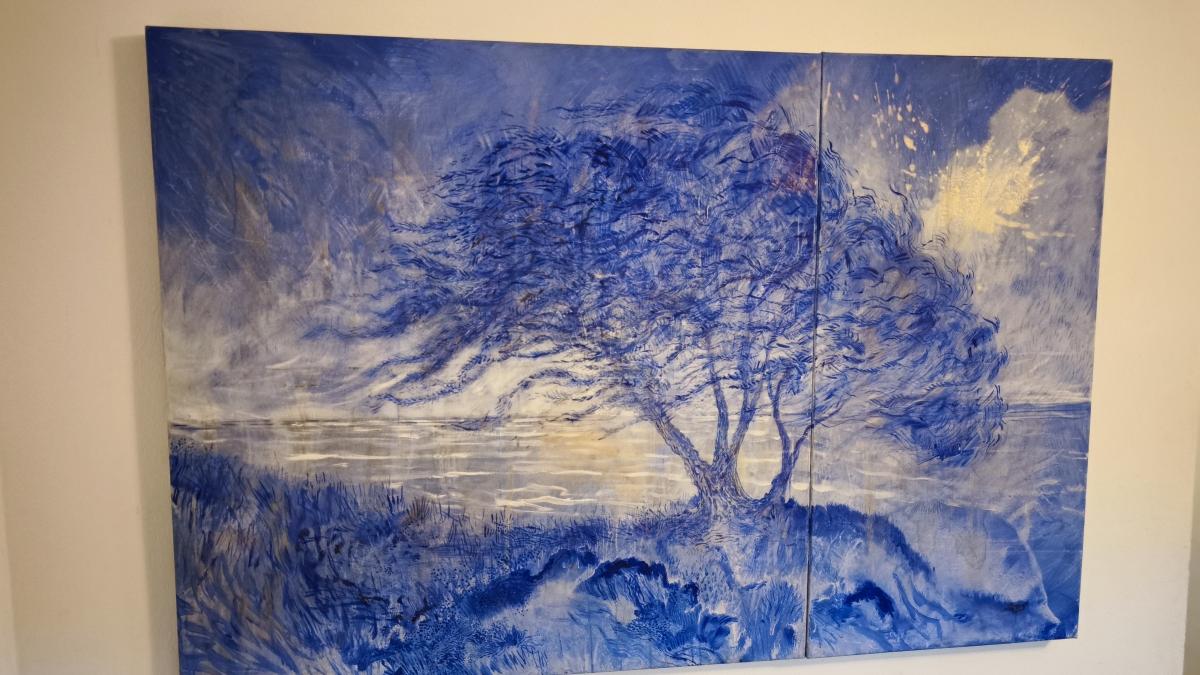 En "Río arriba", el artista presenta una serie de pinturas que vuelve una y otra vez sobre un mismo motivo: un sauce a orillas del Río de la Plata.